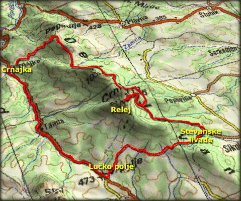 Na 19. kilometru trase stižete do Krstaničkih livada i ograde lovišta. Otvorite kapiju i prođite kroz nju. Nekoliko desetina metara dalje nailazite na širok, solidan, nekada asfaltni put ka RTS releju na Crnom Vrhu, koji očigledno otkako je napravljen nije popravljan, pa je od asfalta malo tragova ostalo. Ovde imate mogućnost da tim putem izađete do samog releja (tj. vrha Deli Jovana), ili da od uspona na vrh odustanete i zadovoljite se nastavkom kruga oko planine. Prosudite na osnovu sopstvenog raspoloženja i trenutnog stanja kondicije, imajući u vidu da je ovaj uspon faktički poslednji konkretniji napor na vašoj trasi. Nagib na ovom putu je prilično jak ali ne bi trebalo da imate problema da pedalirate pod uslovom da vozite neopterećene bicikle.