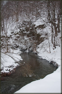 Leti je nemoguće videti Demižlok sa tom količinom vode koju je sada imao.Krajem jula i u avgustu ova moćna reka obično se pretvara u slabašan potočić, a ovog leta u vreme izleta u Lazarev kanjon praktično je potpuno presušio – nikad ga nisam video sa tako malo vode, koja se zadržala tek u sporadičnim dubljim bazenima u koritu, po kome ste mogli da hodate bez da noge pokvasite. A sada... Mestimično je bio dubok i preko metra, tako da nije bilo govora o tome da se samo „pretrči“ kroz vodu, pouzdajući se u vodonepropusnost zimskih planinarskih cipela. U širim delovima doline formirala su se prava jezera, čija je površina, usled višednevnog mraza, sa svojim ledenim pločama počela da podseća na površinu mora u polarnim oblastima. Oko kilometar ispred kanjona, našli smo par debala koja su nam omogućila da, uz dosta opreza, ipak pređemo na drugu stranu. Ali nije mnogo vredelo, jer na tom mestu Demižlok vrluda i često potpuno potkopava desnu obalu, tako da se ne može ići uz njega – trebalo bi zaobići visoko gore, kroz brdo. A kratak zimski dan je neumitno isticao...